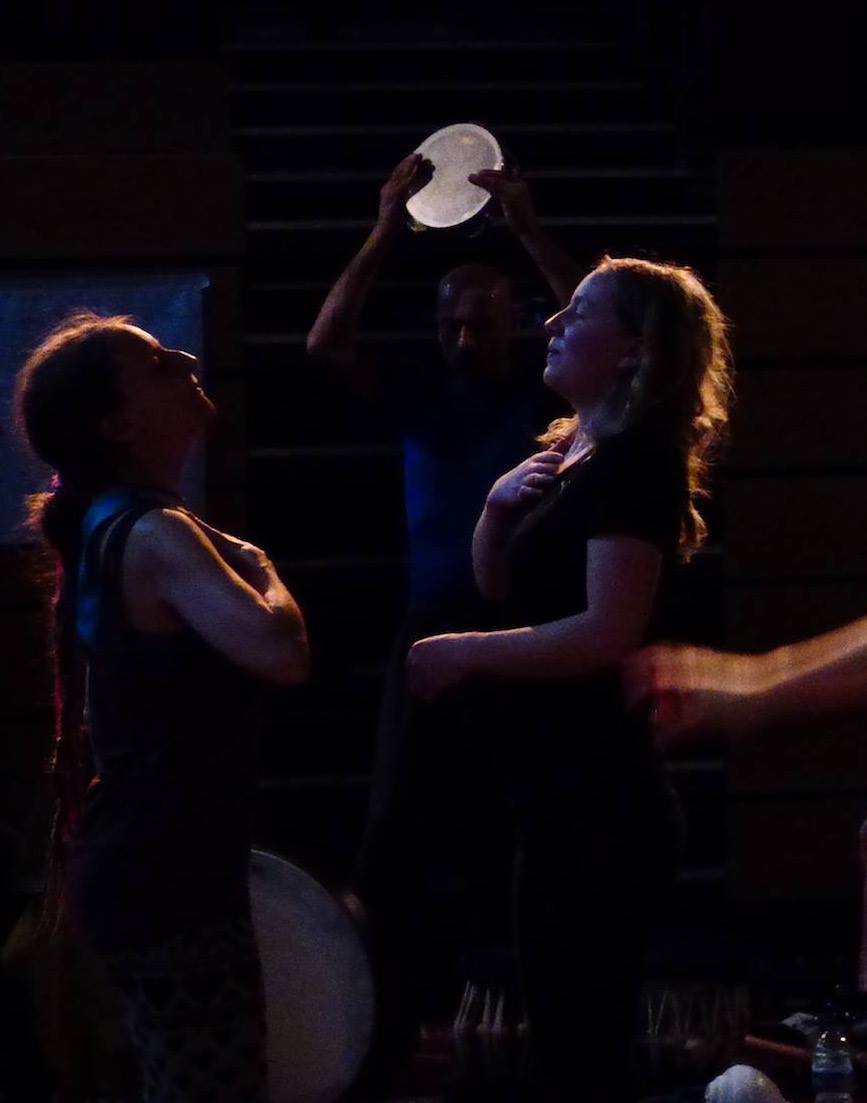 Ansuman Biswas and Caroline Waters will host an open space for music and movement. Caroline will lead a short warm-up and introduction to the principles of Contact Improvisation after which participants of all ages and levels of experience will be invited to actively move or to sit and listen, watch, or simply be in the space. Ansuman will hold the space through music and silence, guiding, sculpting and responding to the energy of the dance.